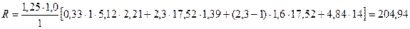 σ zg,о = 16,17·1,25+18,42·1,07= 39,92 кПа; σ zp,о= p– σ zg,o =216,85–54,6=176,92 кПа. Далее вычисляют σ zp и σ zg на кровле подстилающего слоя (отметка –4.03), то есть на глубине z=0,81 м от подошвы проектируемого фундамента. Дополнительное давление σ zp вычисляют по формуле: σ zp= σ zp,о·α Коэффициент α зависит от Интерполируя между величинами α=0,881 при табличном значении ξ=0,8 и α= 0,755 при ξ=1,2 получаем в колонке η=10 искомую величинуα=0,768 при нашем значении ξ=1,16. Тогда при α= 0,768 на отметке кровли слабого подстилающего слоя получим: σ zp= 176,92·0,768= 135,8 кПа. σ zg= σ zg,o +γII2сл.z=39,92+ 18,42·0,81= 54,84 кПа. σ zp + σ zg =135,8+54,84=190,64 - левая часть условия проверки. Далее вычисляем правую часть условия проверки – расчетное сопротивление Rz грунта слабого подстилающего слоя под условным фундаментом глубиной заложения d+ z и шириной bz. Для ленточного фундамента bz=1,4+0,81=2,21 м. Подготавливаем необходимые данные и вычисляем Rz (III слой): gс1 = 1,25; gс2 = 1,0. k = 1; kz = 1; При j = 15° (суглинок мягкопластичный) принимаем: Мg = 0,33; Мq = 2,3; Мс = 4,84. d = 3,13 м.