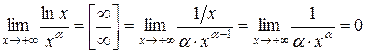 тобто довільний додатний степінь x зростає швидше, ніж Розв’язування. Дійсно, застосувавши ІІ правило Лопіталя, отримаємо