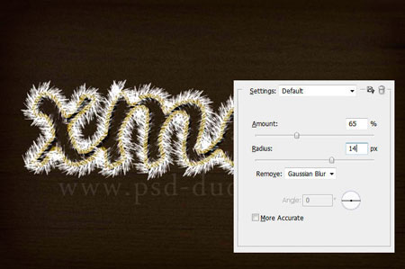 Создайте новый слой (Ctrl + Shift + N) и назовите его “Мишура”. Зажмите CTRL и кликните на миниатюре слоя с текстом, чтобы создать выделение. Сделайте щелчок правой кнопкой мыши по слою с текстом и выберите Создать рабочий контур (Create Work Path), выберите Кисть (Brush) блестки, которую Вы найдете в ZIP архиве в конце урока. Выберите белый цвет для кисти и затем снова делаем щелчок правой кнопкой мыши по слою и выберите Выполнить обводку (Stroke Path).