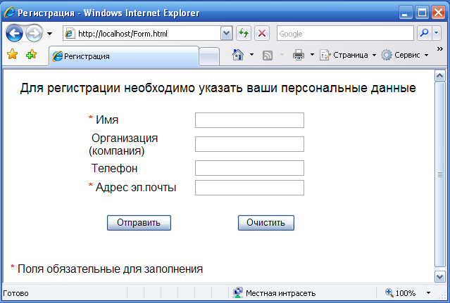 Для выполнения лабораторной работы необходимо создать веб-страницу, содержащую форму с полями, следующего вида: