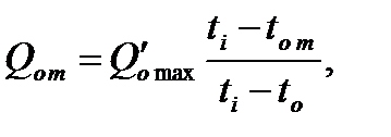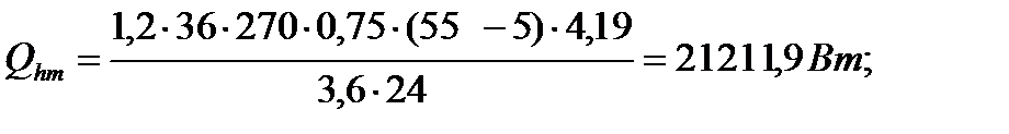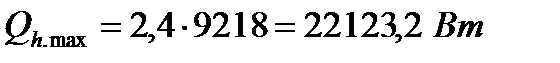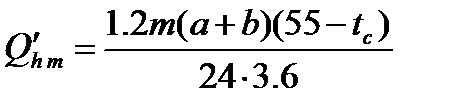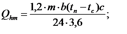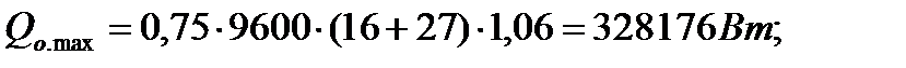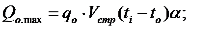 ti – расчетная температура в помещении, °С; to, tv – расчетные температуры для проектирования систем отопления и вентиляции, °С; th – температура воды в системе ГВС, th=55°С; tc - температура холодной воды, tc=5°С; с – теплоемкость воды, с = 4,19 кДж/кг °С. Максимальный тепловой поток, Вт, на отопление жилых и общественных зданий: