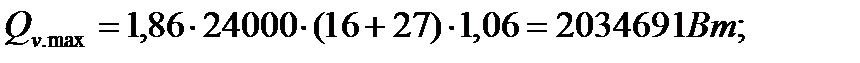 Согласно [1] максимальный тепловой поток на отопление промышленного здания: