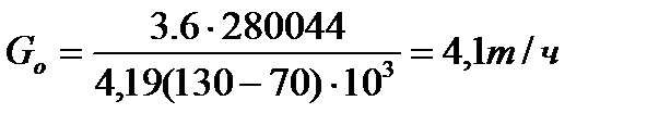 Расчётный расход сетевой воды на отопление в диапазоне будет: