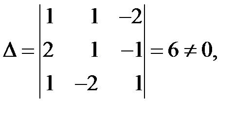 Решение 1 (По формулам Крамера). ◄ Линейная система (3.6) – квадратная: число уравнений равно числу неизвестных – трем. Определитель основной матрицы (из коэффициентов при неизвестных)