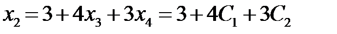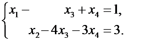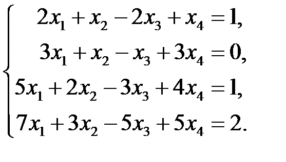 На последнем шаге прямого хода мы для наглядности все-таки вернулись к подробной записи системы. ► 3.2.2. Решить линейную систему ◄ Решаем методом Гаусса. Прямой ход метода: Шаг 1. Первое уравнение заменим на разность между вторым и первым. Цель – получить 1 в качестве коэффициента при Шаг 2. Ко второму уравнению прибавляем первое, умноженное на (–3), к третьему прибавляем первое, умноженное на (–5), к четвертому прибавляем первое, умноженное на (–7). Шаг 3. К третьему уравнению прибавляем второе, умноженное на ( Шаг 4. Отбрасываем нулевые уравнения.