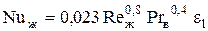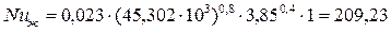 1.4. Выберем произвольно диаметр трубок: материал: сталь; скорость воды: внутренний диаметр: dвн=0,027 м наружный диаметр: dнар=0,029 м толщина стенок трубок: 1.5. Определяем коэффициент теплоотдачи от внутренней поверхности стенки трубки к воде