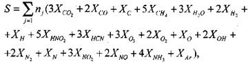 где число атомов соответственно углерода, водорода, кислорода и азота в молекуле горючего; - Суммарное число атомов в системе, вычисленное по составу свежей смеси, равно