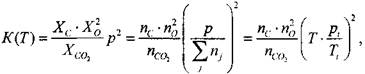 (1.46) Для свежей смеси значения При расчетах процессов горения в постоянном объеме константу равновесия при которой рассчитывается равновесие, и не зависящую от давления, целесообразно записать не через мольные доли