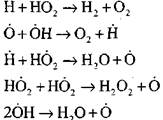 Глава 2. Химические процессы при горении Приведенная последовательность реакций приводит к постепенному увеличению в реагирующей системе концентрации перекисных соединений. Одновременно с накоплением перекисей, радикалов нают идти параллельные реакции: