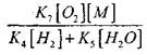(2.6) где При дальнейшем анализе будем рассматривать лишь систему реакций (I—VII), считая реакцию (VI) обрывом цепи с эффективной константой скорости словлено тем, что в результате протекания последовательных процессов (VI) и (IX) происходит гибель двух активных центров-атомов Н. Исходя из этого, получено следующее условие перехода окисления СО в цепной взрыв: