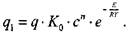 где С - концентрация кислорода, п - порядок реакции, R - универсальная газовая постоянная, Е- энергия активации. При величине теплового эффекта реакции равным q скорость выделения тепла qi реагирующей со смесью составит: Глава 3. Возникновение процессов горения