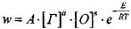 где q - тепловой эффект реакции горения: w - скорость реакции; Анализ соотношений (5.1-5.3) показывает, что существенное влияние на развитие процесса горения оказывает скорость реакции w, описываемая уравнением Аррениуса: