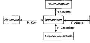А Бине 1 Культура — нейрофизиология (внешняя среда — наследственность) 2 Психометрика — обыденное знание На приведенной здесь схеме (рис 3) указаны варианты подходов к исследованию интеллекта и обозначены фамилии их наиболее ярких представителей и пропагандистов. Что касается культурно-исторического подхода к проблеме дифференциальной психологии интеллекта, то наиболее ярко и последовательно он изложен в книге Майкла Коула «Культурно-историческая психология» (М Когито-Центр, 1997) Я отсылаю к ней заинтересованных читателей Остальные подходы в той или иной мере представлены на страницах этой книги Основным сегодня является психометрический подход в его факторном варианте Date: 2015-09-18; view: 421; Нарушение авторских прав |