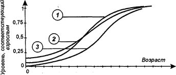 2 4 6 8 10 12 14 16 1. Быстрота восприятия (Thurstone, 1955) 2. Интеллект (по Bayley, 1970) 3. Суждения (Thurstone, 1955) Рис. 24. Интеллектуальное развитие ребенка и подростка (по Ж. Годфруа. Что такое прогресс. М.: Прогресс, 1993) Развитие общих интеллектуальных способностей зависит не только от возраста, но и от вида деятельности (учебной и профессиональной), которой занимается человек. В последнее время данные о снижении интеллекта у лиц пожилого возраста подвергаются критике. Сохраняются, в первую очередь, индивидуальные различия интеллекта. Сторонники концепции об индивидуальной стабильности IQ в течение жизни приводят целый ряд аргументов. Так, по результатам тестирования учеников средней школы и колледжей, успешность выполнения интеллектуальных тестов остается практически неизменной в течение обучения [30]. В частности, Т. Хансен провел исследование интеллекта 613 мальчиков-третьеклассников и сравнил результаты с их же показателями через 10 лет перед поступлением на службу в армию. Корреляция оказалась равной 0,73. В ряде Развитие интеллекта 105 других исследований получены еще более высокие корреляции между уровнем интеллекта, измеренного в раннем детстве, и более поздними результатами (0,46 < г < 0,83). Разумеется, с течением времени корреляция результатов раннего тестирования уменьшалась, но все равно была высокой: через 10 лет она оставалась на уровне 0,65, а через 25 лет — на уровне 0,60. Дж. Андерсон [31] выдвинул гипотезу «перекрытия» для объяснения связи между результатами тестирования интеллекта в разном возрасте. В течение жизни индивид не утрачивает приобретенные знания и интеллектуальные навыки, потому константа IQ отражает отношение часть—целое между существовавшим потенциалом и вновь приобретенным. Однако критики концепции стабильности IQ считают, что можно говорить лишь о постоянстве уровня интеллекта в среднем по выборке, в то время как индивидуальные показатели могут у одних людей ухудшаться, а у других — улучшаться в течение жизни. Исследования калифорнийских психологов показали, что индивидуальные показатели интеллекта с 6 до 18 лет могут изменяться в пределах 30 единиц (при ст = 15). Эти изменения были связаны не со спонтанными колебаниями, а с различиями в семейном окружении: у детей, оказавшихся в благоприятной эмоциональной среде, уровень интеллекта постоянно повышался, а у детей, по отношению к которым родители не проявляли достаточной заботы, наблюдался процесс снижения уровня интеллекта. По данным американских исследователей, решающим фактором, влияющим на относительный прогресс или регресс в развитии интеллекта, оказался уровень образования родителей. Что касается эмоциональных отношений, то эмоциональная подчиненность родителям влияла на спад IQ в возрасте от 4,5 до 6 лет. Подъем же IQ связан с эмоциональным одобрением со стороны родителей, поощрением инициативы и рассудительности, а также формированием родителями у ребенка еще не нужных для адаптации в данном возрасте умений и навыков. Развитие интеллекта в школьном возрасте определяется преимущественно внутренней мотивацией ребенка — стремлением к высоким достижениям, тягой к соперничеству и любознательностью. Более серьезные проблемы возникают при исследовании интеллекта взрослых. Как уже отмечалось выше, большая часть исследований изменения интеллекта взрослых отмечает подъ