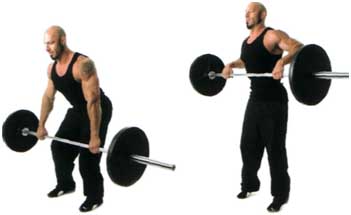 Поднимайте штангу из висящего положения и поднимайтесь на носки, когда штанга находится в самой высокой позиции. Вы можете использовать штангу или гантели.