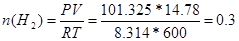 б) w%(O)=20.11%. Возьмем 100 грамм оксида, масса кислорода равна m(О)=20.11 грамм, масса меди m(Cu)=100-20.11=79.89г. 132. а) w%(O)=7.17%. Возьмем 100 грамм оксида, масса кислорода равна m(О)=7.17 грамм, m(Pb)=100-7.17=92.83г. б) w%(O)=13.38%. Возьмем 100 грамм оксида, масса кислорода равна m(О)=13.38 грамм, m(Pb)=100-13.38=86.62г. 133. а) w%(F)=34.89%. Возьмем 100 грамм вещества, масса фтора равна m(F)=34.89 грамм, m(Cl)=100-34.89=65.11г. б) w%(F)=61.65%. Возьмем 100 грамм вещества, масса фтора равна m(F)=61.65 грамм, m(Cl)=100-61.65=38.35г. в) w%(F)=72.82%. Возьмем 100 грамм вещества, масса фтора равна m(F)=72.82 грамм, m(Cl)=100-72.82=27.18г. г) w%(F)=78.96%. Возьмем 100 грамм вещества, масса фтора равна m(F)=78.96 грамм, m(Cl)=100-78.96=21.04г. 134. а) w%(S)=39.1%. Возьмем 100 грамм вещества, масса серы равна m(S)=39.1 грамм, В(S)=2, следовательно, Мэ(S)=32/2=16 г/моль. m(As)=100-39.1=60.9г. б) w%(S)=51.7%. Возьмем 100 грамм вещества, масса серы равна m(S)=51.7 грамм. В(S)=2, следовательно, Мэ(S)=32/2=16 г/моль. m(As)=100-51.7=48.3г. 135. m(Г)=1.591г., V6(О)=70.2 мл. Известно, что Vэ(О)=5.6 л. По закону эквивалентов: 136. m(Me) = 1.2 г., m(MeO) = 2 г., m(MeS) = 2.8 г. 137. Суд=0.218 Дж/(г.К). Мэ(Ме)=29.65 г/моль. Закон Дюлонга-Пти: А(Ме)*Суд≈26. А(Ме) ≈ 26 / 0.218 = 119.3 г/моль. Валентность металла: В(Ме) = А/Мэ = 119.3/29.65 = 4. Точная атомная масса равна А(Ме) = В*Мэ = 4*29.65 = 118.6 г/моль. 138. Суд=0.454 Дж/(г.К). w%(Me)=70.97%. Возьмем 100 грамм оксида. m(Me)=70.97 г., m(O)=100-70.97=29.03 г. 139. Суд=0.281 Дж/(г.К). m(Me)=0.6 г., m(МеO)=0.9 г. 140. Суд=0.147 Дж/(г.К). m(Me)=0.2698 г., m(МеO)=0.3402 г. 141. m(Me)=40 г., V(Н2)=14.6 л. T=18 oC=291 K, P=1.013*105 Па, Суд=0.39 Дж/(г.К). Найдем V(H2) при н. у.: 142. m(Me)=2.162 г., V(Н2)=14.78 л. T=327 oC=600 K, P=101.325*102 кПа, Суд=2.209 Дж/(г.К). 143. Эквивалентная масса кислоты равна отношению молярной массы кислоты к количеству замещаемых протонов: Эквивалентная масса основания равна отношению молярной массы основания к количеству замещаемых ОН-групп: Эквивалентная масса соли равна отношению молярной массы соли к произведению количества катионов на их валентность: 144. а) Н3РО4 + КОН = КН2РО4 + Н2О Мэ(Н3РО4)=М(Н3РО4)/Э=98/1=98 г/моль. б) Н3РО4 + 2КОН = К2НРО4 + 2Н2О Мэ(Н3РО4)=М(Н3РО4)/Э=98/2=49 г/моль. в) Н3РО4 + 3КОН = КН2РО4 + Н2О Мэ(Н3РО4)=М(Н3РО4)/Э=98/3=32.67 г/моль. 145. a) Fe(OH)3 + HCl = Fe(OH)2Cl + H2O Мэ(Fe(OH)3)=М(Fe(OH)3)/Э=107/1=107 г/моль. б) Fe(OH)3 + 2HCl = Fe(OH)Cl2 + 2H2O Мэ(Fe(OH)3)=М(Fe(OH)3)/Э=107/2=53.5 г/моль. в) Fe(OH)3 + 3HCl = Fe(OH)Cl3 + 3H2O Мэ(Fe(OH)3)=М(Fe(OH)3)/Э=107/3=35.67 г/моль. 146. a) NaHCO3 + NaOH = Na2CO3 + H2O Мэ(NaHCO3) = М(NaHCO3)/Э = 84/1 = 84 г/моль. б) NaHCO3 + BaCl2 = BaCO3 + NaCl + HCl Мэ(NaHCO3) = М(NaHCO3)/Э = 84/2 = 42 г/моль. 147. m(щелочи) = 1.00 г, m(HCl) = 2.14 г. Мэ(щелочи) =?. Закон эквивалентов: 148. m(кислоты) = 0.18 г, m(NaOH) = 0.1 г. Мэ(кислоты) =?. Закон эквивалентов: 149. m(КОН)=14 г, m(H2SO4) = 24.5 г. Мэ(H2SO4)=?. Закон эквивалентов: 150. m(КОН)=1.291 г., m(H3PO3)=0.943 г. Мэ(H3PO3)=?. Закон эквивалентов: 2КОН + H3PO3 = К2НРO3 + 2Н2О Date: 2015-09-18; view: 672; Нарушение авторских прав |