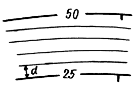 Расстояние между горизонталями в плане d называется заложением горизонталей (см. рис. 1.22).