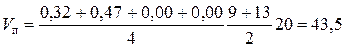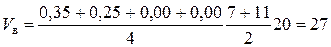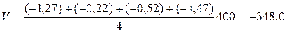 Для упрощения вычислений удобно выделить наименьшую из четырех отметок вершин квадратов с округлением до дециметра и производить арифметические действия с остающимися дополнениями до соответствующей черной отметки. В данном случае