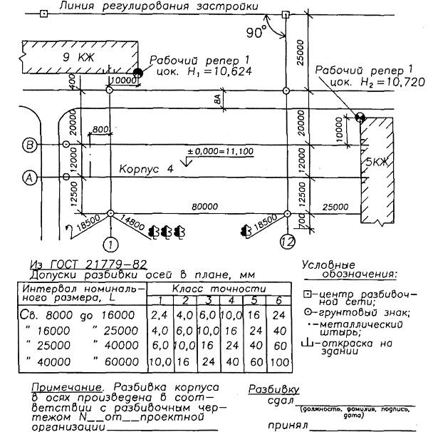 Рис. 2.41. Исполнительная схема закрепления основных осей