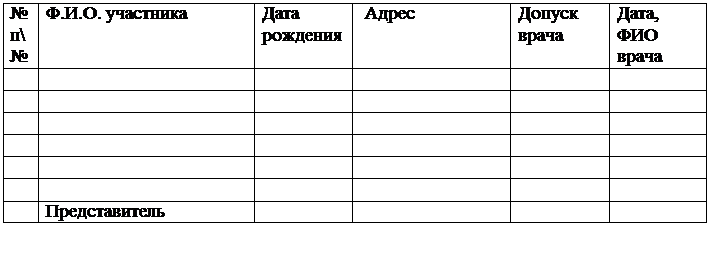 Допущено к соревнованиям: ___________________ человек
