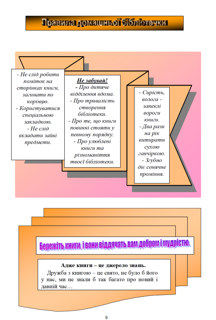 ІІ. Мозковий штурм «З чого складається книга»? - Це обличчя (або одяг) книги, це те, що зовні вирізняє її з-поміж інших видань - обкладинка. - Обкладинка з цупкого паперу(картону) – палітурка. - Аркуш паперу, що з’єднує її з сторінками - форзац. - Сторінки, які йдуть перед текстом – у перекладі - форзац. - Форзаців є – два,(часом це просто білий папір, а у «Читанці» на першому малюнку вміщено малюнок, що розповідає про створення книги, а на другому, у кінці підручника, зображено бібліотеку). - Місце, де зшиті сторінки книги, а також частина обкладинки, що його закриває – корінець. - Основна частина «Читанки» - сторінки з текстом. - Книгу завершує –зміст. ІІІ. Побудова асоціативного куща: вибери правильну відповідь. – ІV. Вікторина «Цікаво знати»! - Першою бібліотекою в Україні була бібліотека при (Київському Софіївському соборі, заснована 1037 року київським князем Я. Мудрим). - Першою друкованою книгою в Україні вважають («Апостол», Іван Федоров виготовив у Львові 1574 р.) - Перша спеціалізована бібліотека для дітей була заснована (в 1909 році, в Києві бібліотекарем-педагогом Дорою Доброю). - Державна бібліотека України для дітей заснована (в 1967р.). VІІ. Встанови зв'язок між словами. Прочитати журнал Розглянути поезії Погортати газета Вивчити підручник Проаналізувати збірка оповідань Знайти визначення казки