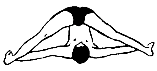 Лягте на спину. Медленно заведите прямые ноги за голову, коснувшись пальцами пола, как при выполнении асаны «плуг» (Халасана). Затем ноги должны быть расставлены так широко, как это возможно, оставаясь прямыми. Зафиксируйтесь в этом положении, крепко держа руками пальцы ног. Эта асана благотворно действует при тонзиллитах, способствует развитию шеи, плеч, спины. Считается, что эта асана оказывает действенную профилактику против неизвестных расстройств организма. Очень рекомендуется тучным людям и тем, кто хочет уменьшить тяжеловесность бедер. Так же, как и при практике Халасаны, уменьшается или исчезает вовсе неприятный запах тела. Это прекраснейшее средство от многих кожных заболеваний. Ну а самое, пожалуй, главное ее свойство – это омолаживание организма в целом. В соответствии с классическими концепциями Йогасана виджняны (науки йоги) палатальная (небная) область является источником жизненного флюида «амриты», которая омолаживает тело и теоретически способна как бы стимулировать состояние нестарения, тогда как область вокруг пупка – это место пылающего, все поглощающего «Солнца». Подведение палатальной (небной) области к уровню ниже уровня «Солнца» в ходе выполнения данной асаны обеспечивает то, что «амрита» не сжигается его «жаром», а, распространяясь по телу, омолаживает его. Далее эта асана стимулирует легкие, способствуя профилактике астмы и туберкулеза. Полезна она и от грыжи. Она развивает зрение и как бы очищает его. Внимание! Предостерегаем от выполнения этой и подобной ей асаны людей, страдающих сердечными заболеваниями и высоким кровяным давлением.