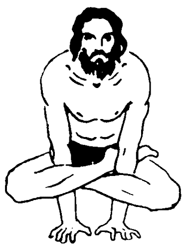 Сядьте на корточки, но пятки при этом должны находиться под анусом и вместе, а опираться следует лишь на пальцы. Локти упираются в колени, пальцы рук сцеплены. Эта асана успокаивает боли в суставах стоп и пальцев. Она как бы усмиряет половую активность, заставляя семя двигаться вверх. При асане задействуется брюшная полость или, как она называется в йогической теории, Уддияна‑бандха, что помогает от болезней брюшной полости и даже излечивает их. Она освежает мозг, стимулирует отток крови как от брюшины, так и от головы и возвращает ее с большой скоростью. В Уткатасане рекомендуются наули (упражнения для брюшной полости).