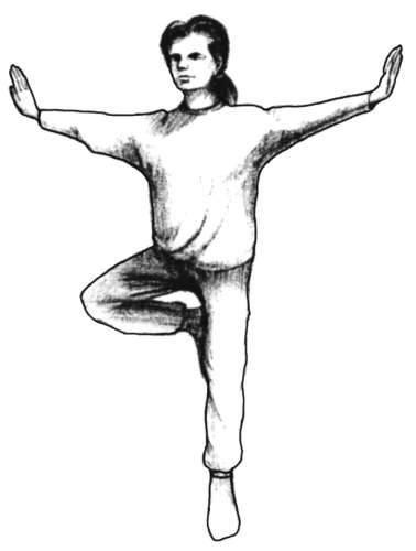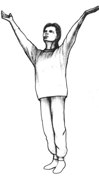 Это упражнение представляет собой своеобразное хождение. Основной смысл его заключается в том, чтобы полной концентрацией сознания держать все тело в максимальном напряжении. Дыхание обычное. Станьте прямо, прямые руки прижаты к бокам. Взгляд устремите строго вперед. Напрягите все тело и, в первую очередь, ноги. Сделайте шаг негнущейся в колене ногой и приставьте ее пяткой к носку также прямой и напряженной опорной ноги. Далее, не ослабляя напряжение и полностью охватывая все тело сконцентрированным вниманием, проделайте еще один шаг. Таким образом «шагайте» от восьми до желаемого вами количества раз вперед и столько же шагов проделывайте назад, приставляя носок к пятке. Хождение должно быть медленным. Если почувствовали, что какая‑то часть тела расслабилась, тут же напрягите ее. Голову сильно не поднимайте и не опускайте. Подбородок должен находиться на расстоянии четырех пальцев ладони и сверху плоско уложенного пятого указательного пальца от ключиц. Упражнение, являясь контракционным, то есть на максимальное напряжение тела, укрепляет и стимулирует при правильном выполнении мышцы ног, рук, груди, живота. Развивает концентрационные способности сознания.