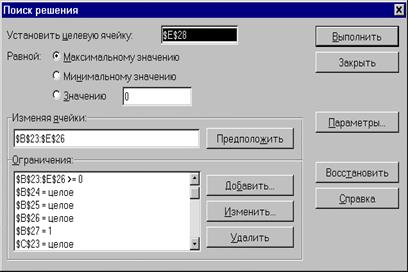 Рис. Рабочий лист Excel с результатами Поиска решения