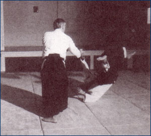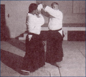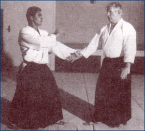 | Одно из значений мудр, используемых в Тантре для определения положения рук, – это «замок». Здесь мы видим мудру Айкидо никкё. И хотя всё выглядит как линейное движение, на самом деле никкё выполняется спиральнымдвижением, как бы «обнимающим землю».