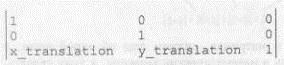 Использование матриц в играх Мы уже достаточно поговорили о матрицах. Теперь посмотрим, зачем они нам нужны и как их использовать в играх. В программе из Листинга 4.8 мы создали поле астероидов, которые перемещались, изменяли свой размер и вращались. Если мы представим наши объекты как набор матриц, то сможем использовать умножение матриц для их трансформации. Прелесть матриц состоит в том, что вы можете объединить все операции в одну матрицу, описывающую перемещение, масштабирование и вращение. Помните, когда пишутся видеоигры, мы должны искать наиболее быстрый и эффективный алгоритм. Чем больше хитростей и трюков у нас в запасе, тем лучше. Теперь посмотрим на матрицы для перемещения, масштабирования и вращения. Главная матрица перемещений Главной матрицей перемещений будем называть такую матрицу, в которой x_translation и y_translation - это коэффициенты перемещения объекта по осям Х и Y. Вот как она выглядит: