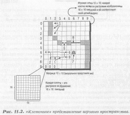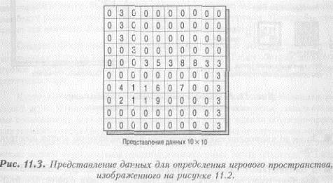 Преставление данных для нашего примера «клеточного» игрового пространства показано на рисунке 11.3.