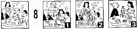 Одна из четырех картинок справа выражает такое же состояние, такие же мысли, чувства или намерения. Необходимо найти эту картинку. Правильным ответом будет рисунок N 2, выражающий такое же состояние (напряжения или нервозности), что и рисунки слева. Поэтому на Бланке ответов цифра 2 обведена кружком. Рисунки N 1, 3, 4 не подходят, так как отражают другие состояния (радости и благополучия). Итак, в каждом задании субтеста среди четырех рисунков справа Вы должны выбрать тот, который подходит к группе из трех рисунков слева, потому что отражает сходное состояние человека. Номер выбранного рисунка обводится кружком на Бланке ответов. На выполнение субтеста отводится 7 минут. За минуту до окончания работы Вы будете предупреждены. Работайте, по возможности, быстрее. Не тратьте много времени на одно задание. Если затрудняетесь с ответом, переходите к следующему пункту. К трудным заданиям можно будет вернуться в конце, если хватит времени. В затруднительных случаях давайте ответ, даже если не совсем уверены в его правильности. Если у Вас есть вопросы, задайте их сейчас. Date: 2015-09-18; view: 355; Нарушение авторских прав |