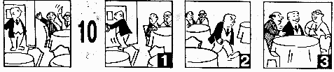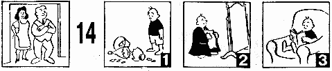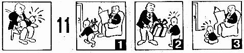 СУБТЕСТ N 2 "ГРУППЫ ЭКСПРЕССИИ" "В этом субтесте Вы будете иметь дело с картинками, на которых изображены позы, жесты, мимика, то есть выразительные движения, отражающие состояние человека. Для объяснения сути задания рассмотрим пример. В этом примере три картинки, расположенные слева, иллюстрируют одно и то же состояние человека, одни и те же мысли, чувства, намерения.
