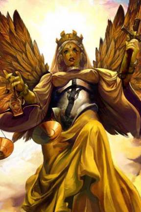 Король бубнов: «Каменная дева» Сущность карты короля бубнов является королевой… казус. Это женщина в длинном платье, крыльями, с весами в руках. Её тело состоит из жёлтого камня, поэтому её и назвали Каменной девой. Максимальное кол-во постов (в бою своих), на которые королева может быть призвана - 10. Для призыва данной сущности в воздухе необходимо примерно прорисовать знак весов.