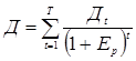 де де Вр — витрати розрахункового періоду (року); Рt — результат діяльності за t –ий період; Bt. — інноваційні витрати за t –ий рік; αt — коефіцієнт дисконтування (дисконтний співмножник). Назва цього показника в залежності від умов термінології може змінюватися, та інтегральним ефектом може вважатися чистий дисконтований доход, чиста приведена або чиста теперішня вартість, чистий приведений ефект, але суть їх одна і та ж. Індекс рентабельності (Ір) — це відношення наведених доходів до наведених на ту ж дату інноваційних витрат. Для розрахунку індексу рентабельності використовується наступна формула: