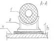 1-трубопровод с тепловой изоляцией, 2-корпус опоры – башмак, 3-металическая прокладка в виде швеллера, 4-ж/б плита.Скользящие опоры применяются при всех способах прокладки труб-в, для всех d независимо от направления горизонтальных перемещений. «+»простота «-»большой коэффициент трения, сход с опоры при боковых перемещениях. Котковая опора Применяются для трубопроводов d >200, при осевых перемещениях и при прокладке в тоннелях, коллекторах и на отдельно стоящих опорах при надземной прокладке. Работают на прямолинейных участках и при боковом смещении. 1-трубопровод с тепловой изоляцией, 2-башмак, 3-каток,4-опорная плита с ограничителем, 5-лапа «+»малый коэффициент трения «-»необходимость в уходе и смазке