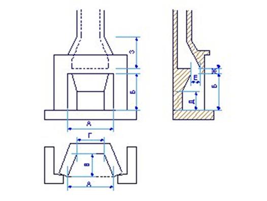 Рис. 9.9 – Геометрические параметры камина ручной кладки [5]