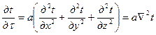 При неустановившемся распространении тепла по всем трем осям координат дифференциальное уравнение приобретает вид: