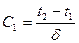 Для нахождения постоянных С1 и С2 задаемся граничными условиями: при х = 0 имеем t = t1, тогда С2 = t1; при х = δ имеем t = t2, тогда Используя значения постоянных, получаем уравнение распределения температур в пределах однородной однослойной конструкции