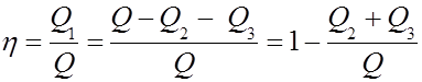 Q1 -полезная (выходная) энергия. Q2 - энергия, затрачиваемаяна разогрев узлов и деталей. Q3 - энергия, затрачиваемая в окружающее пространство.