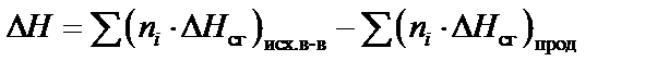 3) Тепловой эффект химической реакции равен разности сумм теплот сгорания исходных веществ и продуктов реакции, умноженных на стехиометрические коэффициенты: