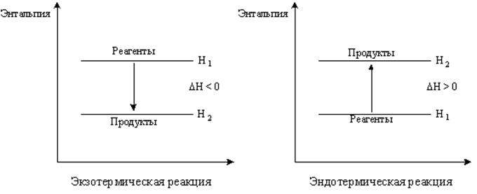 Энтальпия, также как и внутренняя энергия, является термодинамической функцией состояния системы. Химические реакции, протекающие с выделением теплоты, называются экзотермическими. Химические реакции, протекающие с поглощением теплоты, называются эндотермическими.