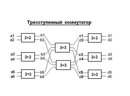 Рис. 5. Схема трехступенного пространственного коммутатора