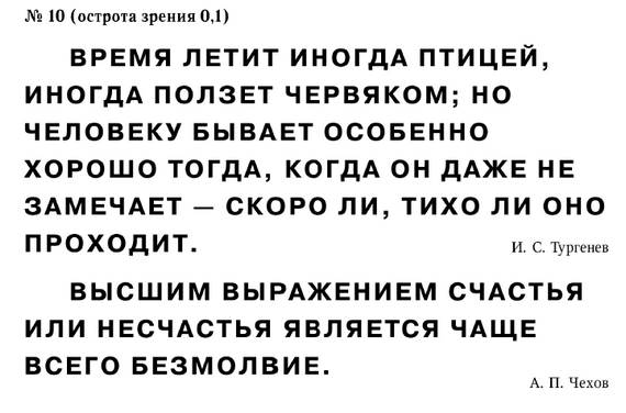 Рис. 9 Тренинги с текстами Упражнение 1 Из приведенных ниже отрывков определите самый мелкий шрифт, который можете читать свободно, без усилий на расстоянии 20–30 см (рис. 10, 11).