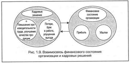 Возможности решения кадровых проблем во многом определяются финансовыми возможностями организации. Отсутствие у организации достаточных финансовых средств сдерживает принятие решений относительно повышения заработной платы, финансирования программ обучения персонала, программ поддержки высвобождаемых работников. В свою очередь финансовое положение предприятия зависит от целого ряда условий, в частности, от того, какие кадровые решения на этом предприятии были приняты. Более того, непосредственной реализацией многих кадровых решений является улучшение финансового состояния организации. Это относится, например, к сокращению персонала, повышению его квалификации, подбору соответствующих специалистов, стимулированию их высоких трудовых результатов. Таким образом, по мере улучшения финансового состояния организации расширяются ее возможности по реализации эффективных кадровых решений. Соответственно, принятие оптимальных кадровых решений положительным образом влияет на финансовые результаты работы компании. Вложения, связанные с реализацией таких кадровых решений, как правило, дают высокую отдачу, в то время как принятие непродуманных кадровых решений отрицательно сказывается на результатах работы организации и ее финансовом состоянии. Это относится и к практике «бездействования» непринятия необходимых кадровых решений, которая, как правило, также сопровождается финансовыми потерями и упущенной выгодой. Условия, зависящие от работников. Наряду с необходимостью анализа состояния внешних и организационных условий при принятии кадровых решений требуется информация, характеризующая самих работников. Это: • демографические особенности работников; • уровень образования; • опыт работы; • способности; • личностные качества; • потребности; • мотивация; • отношение к работе. Без учета данных характеристик работников невозможно принять взвешенные решения относительно выбора наилучшего из обратившихся в компанию кандидатов на имеющуюся вакансию, равно как обеспечить справедливое соотношение в оплате труда работников, выбрать претендентов на участие в программах обучения, отобрать тех сотрудников, которые подлежат сокращению в период реорганизации и сокращения производства. МОДУЛЬ 2 «КОНЦЕПЦИЯ УПРАВЛЕНИЯ ЧЕЛОВЕЧЕСКИМИ РЕСУРСАМИ В СИСТЕМЕ СОВРЕМЕННОГО МЕНЕДЖМЕНТА» Тема лекции: «Эволюция теории и практики кадрового менеджмента» Date: 2015-09-18; view: 3796; Нарушение авторских прав |