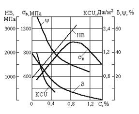 Рисунок 3. 1. Влияние углерода на механические свойства горячекатаных сталей