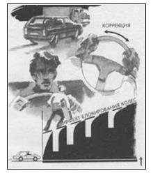 Реакция на неожиданную опасность у разных водителей неодинакова, но чаще всего она выражается в резком рефлекторном торможении с полным блокированием колес автомобиля. Следствием такой реакции является потеря устойчивости и управляемости автомобиля. Страх сковывает действия водителя, заставляет его увеличить тормозное усилие. Автомобиль на заблокированных колесах продолжает прямолинейное движение и, если остановочного пути недостаточно, совершает наезд или столкновение. Торможение с постоянным усилием представляет определенную опасность даже для опытного водителя. Эта опасность чаще всего связана с психологическими факторами (страх заставляет сильнее давить на тормозную педаль) и отработанной до автоматизма тормозной реакцией на опасность (чем больше опасность, тем сильнее усилие). Поэтому импульсное торможение всегда безопаснее непрерывного, так как уменьшает вероятность совершения грубой ошибки, хотя теоретически оно обусловливает серьезные потери из-за неполного использования тормозных возможностей автомобиля. Начинать торможение, когда скорость автомобиля высока, а коэффициент сцепления неизвестен, лучше всего коротким тормозным импульсом, который позволит определить скользкость покрытия. Следующие за ним тормозные усилия можно увеличивать и по силе, и по продолжительности, так как чем ниже скорость, тем позже возникнет блокирование колес. Это связано с так называемым динамическим коэффициентом сцепления, на который существенно влияет скорость автомобиля. Автогонщики знают, что движение со скоростью больше 200 км/ч можно сравнить с движением по льду, когда даже небольшая ошибка приводит к потере устойчивости и управляемости. Одним из секретов ступенчатого торможения является использование кратковременного растормаживания для коррекции устойчивости. На мощный тормозной импульс автомобиль реагирует рысканьем из-за неодинаковой реакции четырех тормозных устройств колес и из-за неоднородности внешне одинакового покрытия. Опытный водитель не ждет, когда суммарные колебания автомобиля в результате многих тормозных импульсов приведут к возникновению критического заноса, а стремится каждый период растормаживания использовать для стабилизации автомобиля. Поэтому внешним признаком профессионализма будет полное сохранение курсовой устойчивости при самом интенсивном торможении.