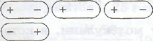 Рис.6.3. Схема взаимодействия согласующихся мгновенных электрических дипольных моментов (показаны стрелками) атомов соседних молекул: 1 – электроны, 2 – ядра атомов.
