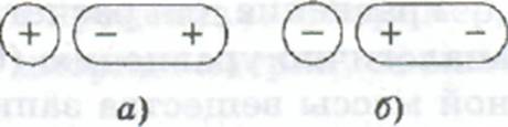 Рис.6.4. Ориентация полярной молекулы растворителя в электрическом поле катиона (а) и аниона (б)